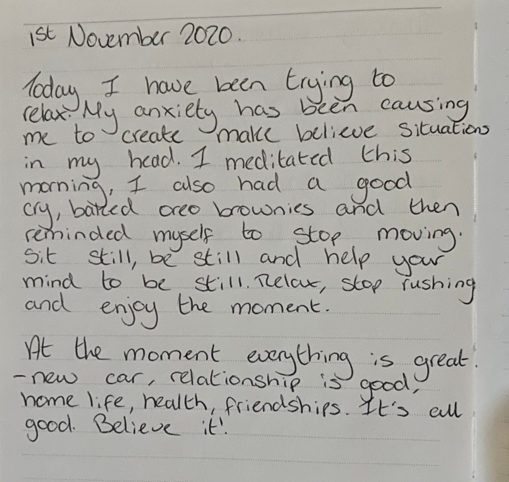 But what I love the most about this entry, is that despite all the crap I was feeling on the inside, I still tried to find the positives of this one day. I still allowed myself to cry. I still found and did things that brought me some uplifting emotion. I still acknowledged what I was grateful for. I just had a hard time believing that what was good could be true when all I felt and heard was bad. That’s where the real battle is. Believing the good when times are undoubtably bad.
